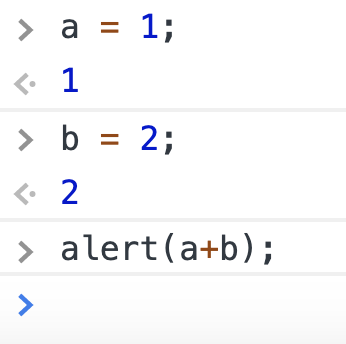 alert(a+b); 를 입력해주면