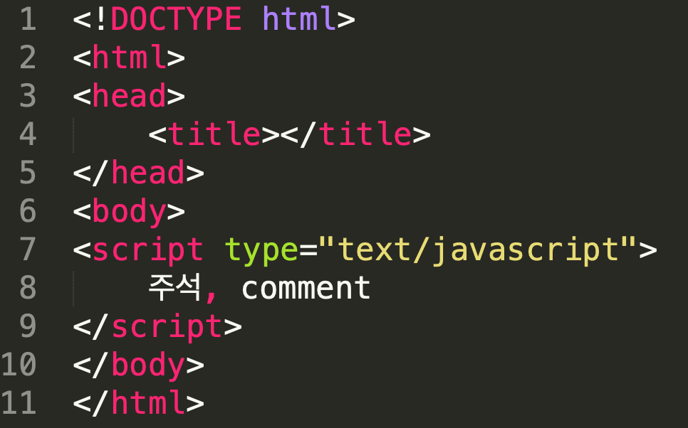 "주석, comment" 라고 입력하면 없는 문법이기 때문에 에러가 발생한다. 하지만